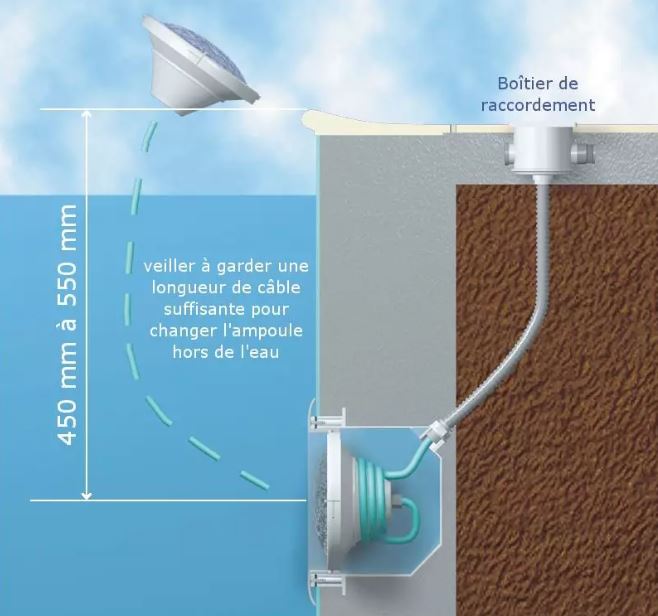 En effet, le bloc optique est généralement relié à un câble qui peut être déconnecté, permettant ainsi de retirer l’ampoule de la piscine pour la remplacer. Une fois l’ampoule changée, il suffit de reconnecter le câble et de remettre le bloc optique en place. Certains projecteurs sont également munis d’une longueur de câble suffisante permettant le remplacement en toute simplicité.
