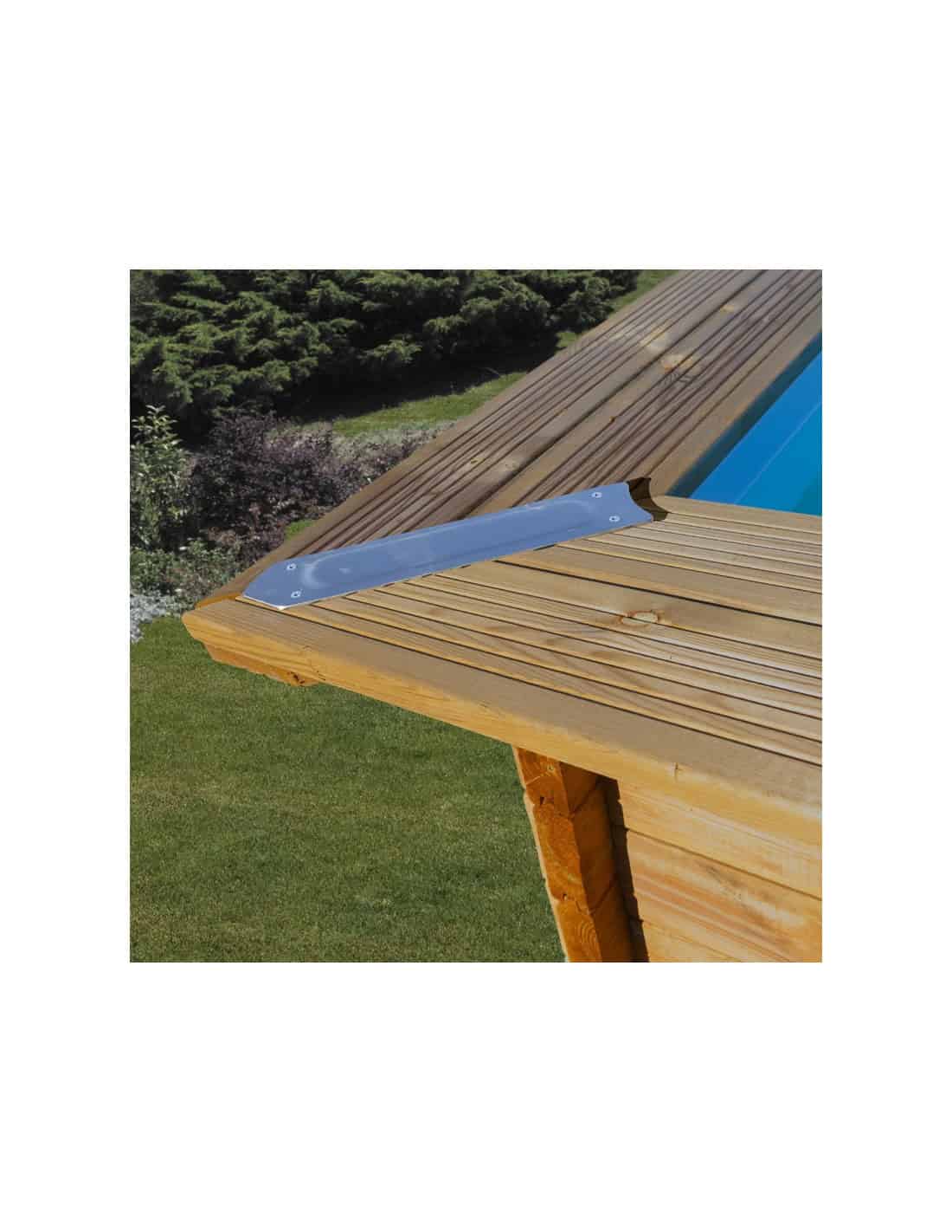 11. Margelles bois : en pin sylvestre traitée autoclave classe IV, simple (190 mm) ou double (2 x 145 mm) selon modèle, épaisseur 28 ou 36 mm (selon modèle)