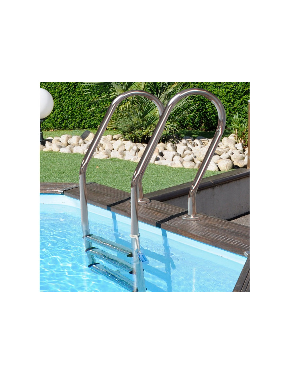 3. Échelle bois : possibilité de réajuster l'échelle en fonction de la hauteur du bassin